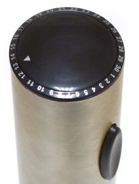 Данное приспособление в прочном и стильном корпусе позволит вам откупорить любую винную бутылку традиционной формы, потратив на это не более 8 секунд. Для управления электроштопором используется всего одна кнопка, при этом его работа сопровождается горением красивой красной подсветки. А благодаря специальной поворотной шкале на крышке вы сможете отметить дату, когда была откупорена бутылка.